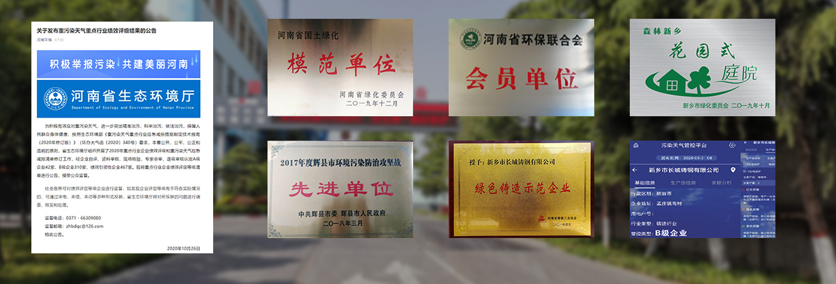 尊龙凯时人生就是博铸钢重视环保治理工作,始终坚持“绿色发展、生态铸造”理念,通过不断的努力,先后被评为“河南省绿色铸造示范企业”、“河南省国土绿化模范单位”、“环境污染防治攻坚战先进单位”,“重污染天气管控绩效分级B级企业”。我司将加大环保治理力度,向A级企业对标,实现企业的环保效益与经济效益双丰收。