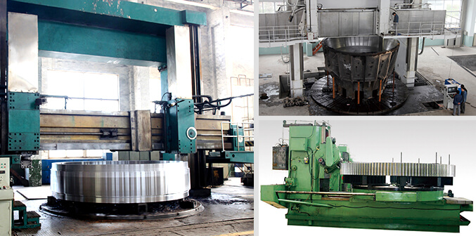 半自动喷砂设备一台套;数控3.15M~8M双柱立车(群)13台套;数控120x3000重型卷板机1台;俄罗斯进口的φ1.25m—8m滚齿机(群)6台套;各类调质电炉6台,能够满足从毛坯件到成品件的加工和部装件的需求。