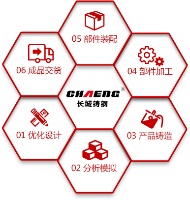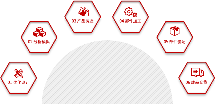 可为客户提供装备部件从优化设计、分析模拟、产品铸造、部件加工、部件装配、到成品交货的一条龙6项配套服务